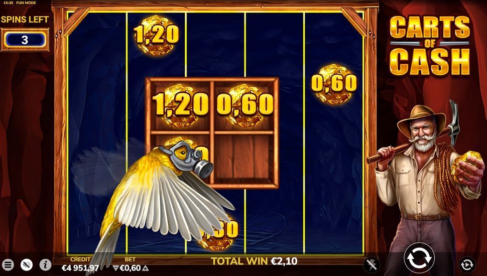 Dalam perihal gameplay, ada fitur Gold Carts, yang timbul dalam wujud 3 kereta yang terletak di bagian atas 3 gulungan tengah game. Kamu bisa mengisi kereta ini dengan memperoleh Gold Cart Scatters, serta mereka bisa tumpah secara acak serta berikan Kamu Wilds biasa, Multiplier Wilds, ataupun apalagi merangsang fitur Golden Respins.